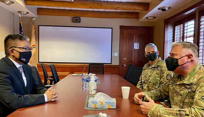 Navajo Nation Vice President Myron Lizer meeting with Major General John F. King at the Office of the President and Vice President in Window Rock, Ariz. on Dec. 14, 2020. [Photo courtesy Navajo Nation]