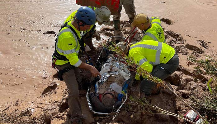 Last Friday’s heavy rainfall in northern Cochise County led to an arduous rescue of a woman who was trapped in a muddy wash overnight after being swept away by raging water north of Benson.