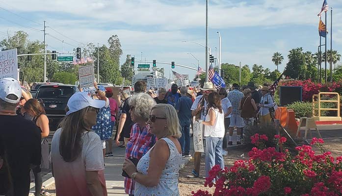 Scottsdale residents protest the decision by ICE to repurpose a hotel for migrant shelter.